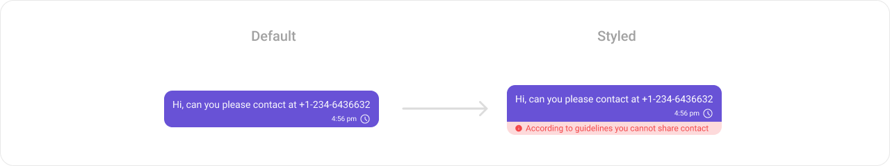 MessageTemplate provides you with methods that allow you to alter various properties of the MessageBubble. These properties include aspects such as thetype and category of a message, the appearance and behavior of the header, content, and footer sections of the message bubble,