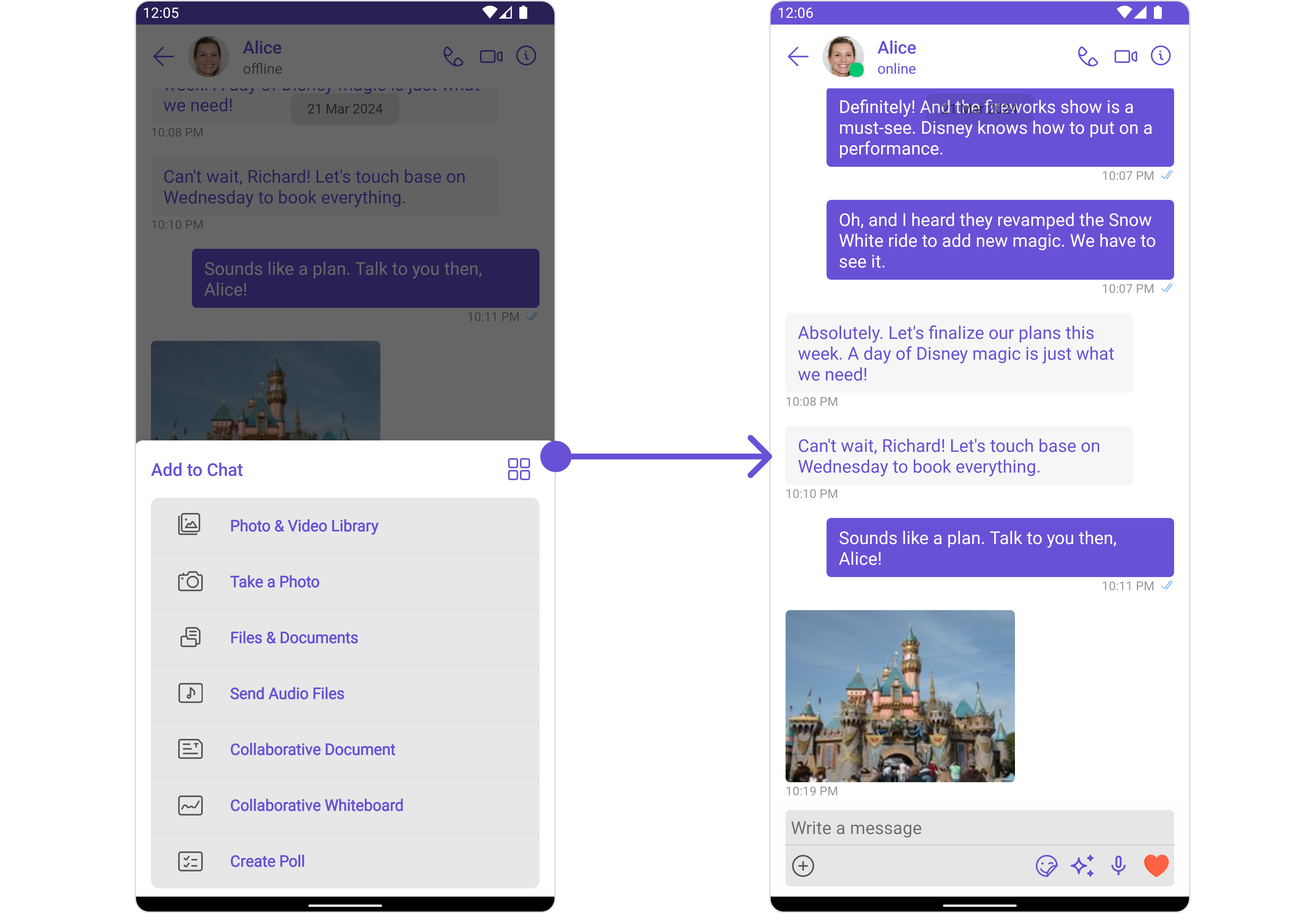 Beyond text, CometChat allows users to share various media types within their conversations. This includes images, videos, audio files, and documents, enriching the chat experience and enabling more comprehensive communication.