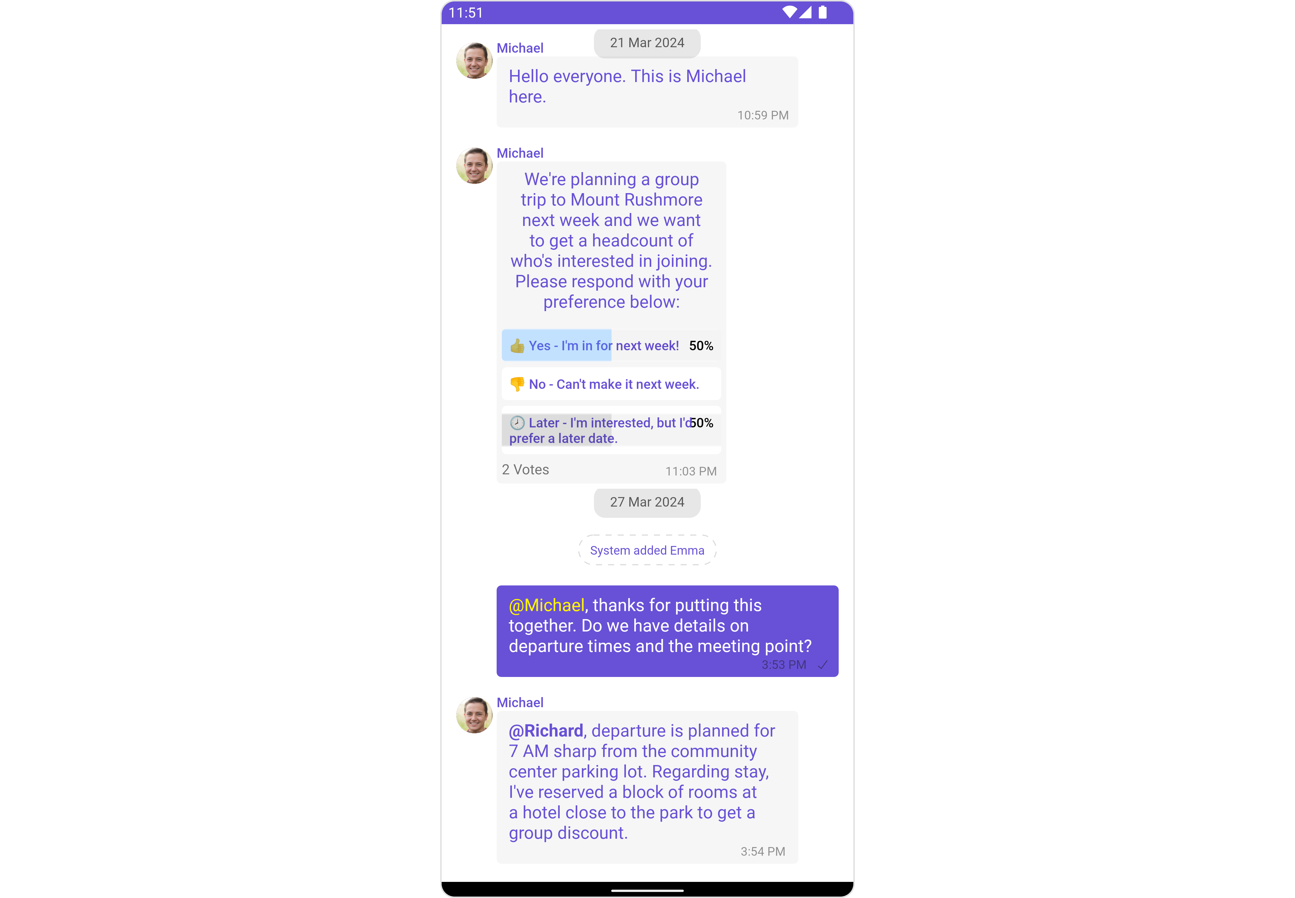 MessageList component to the layout will only display the loading indicator. To fetch messages for a specific entity, you need to supplement it with User or Group Object.Actions