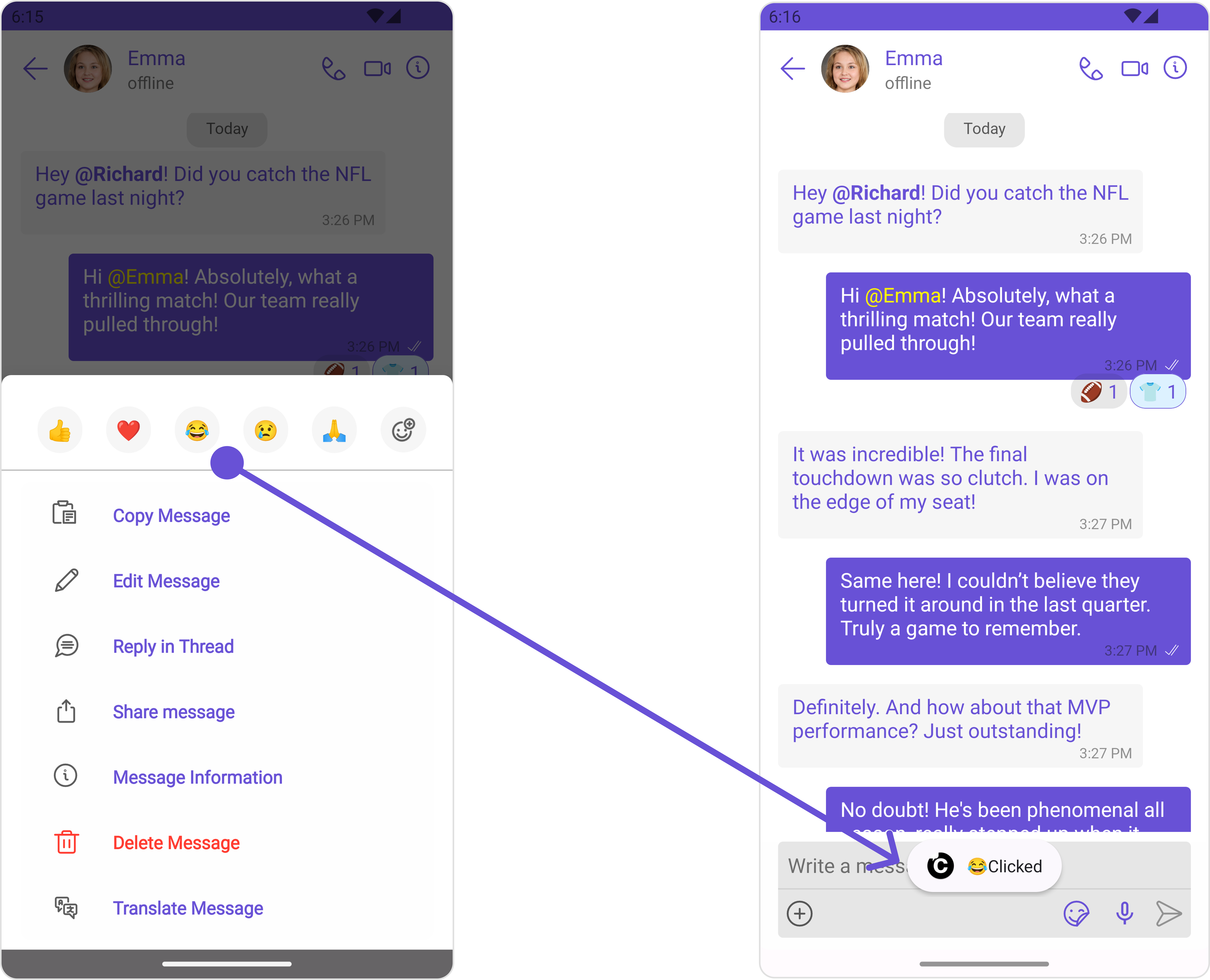 | Set Quick Reactions | The list of quick reactions to be set.This list will replace the predefined set of reactions | .setQuickReactions(Arrays.asList("👻","😈","🙀","🤡","❤️"); |