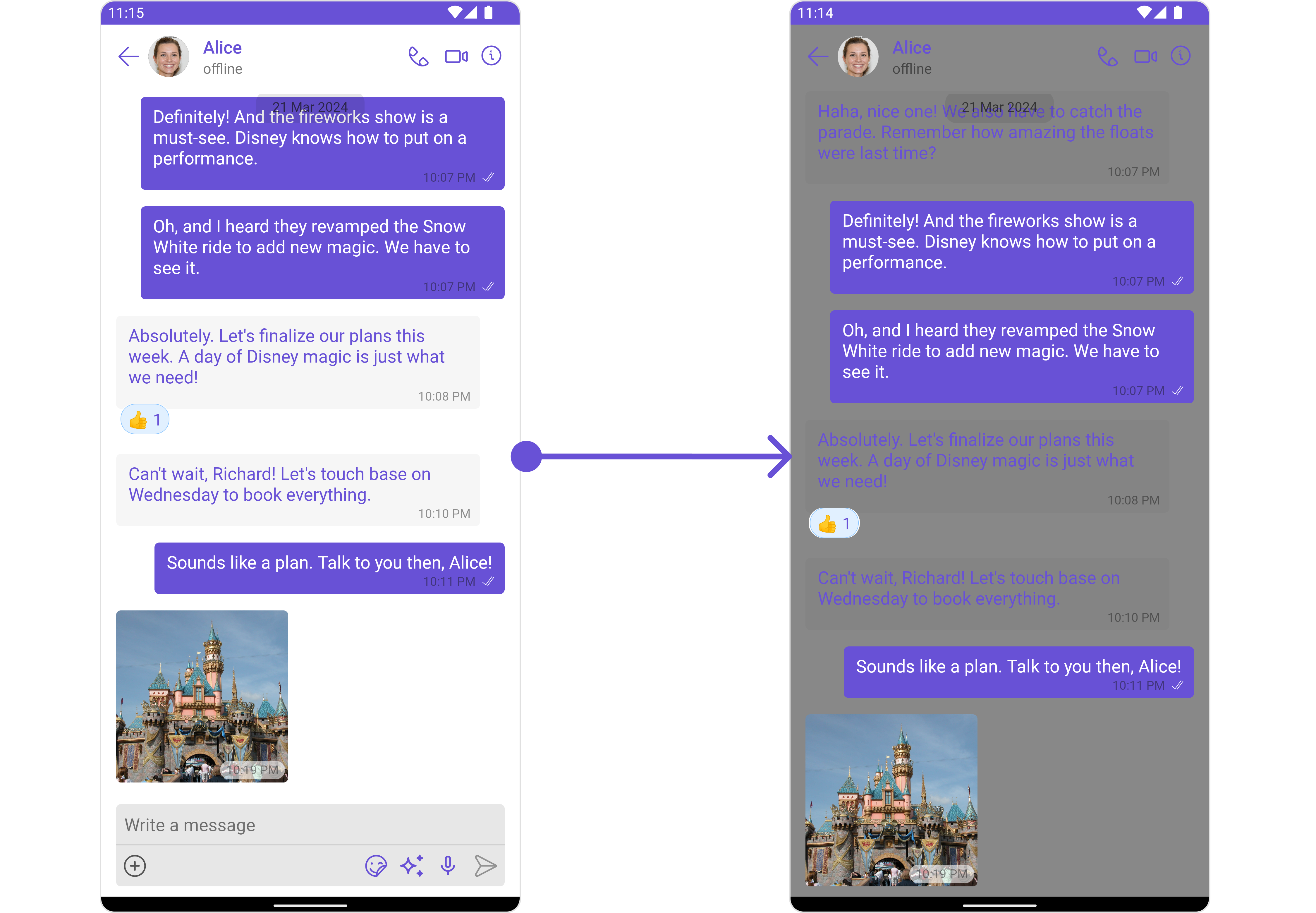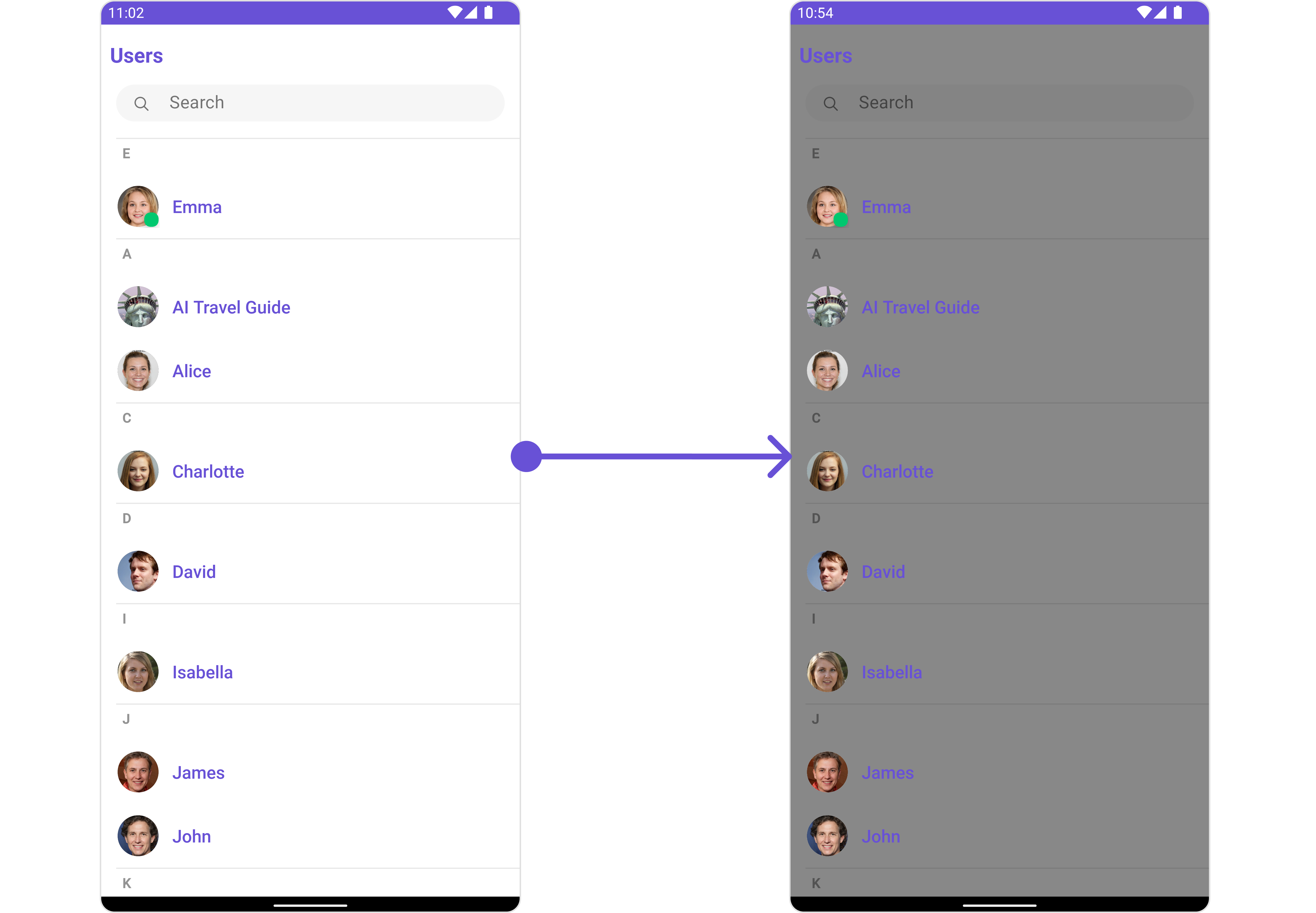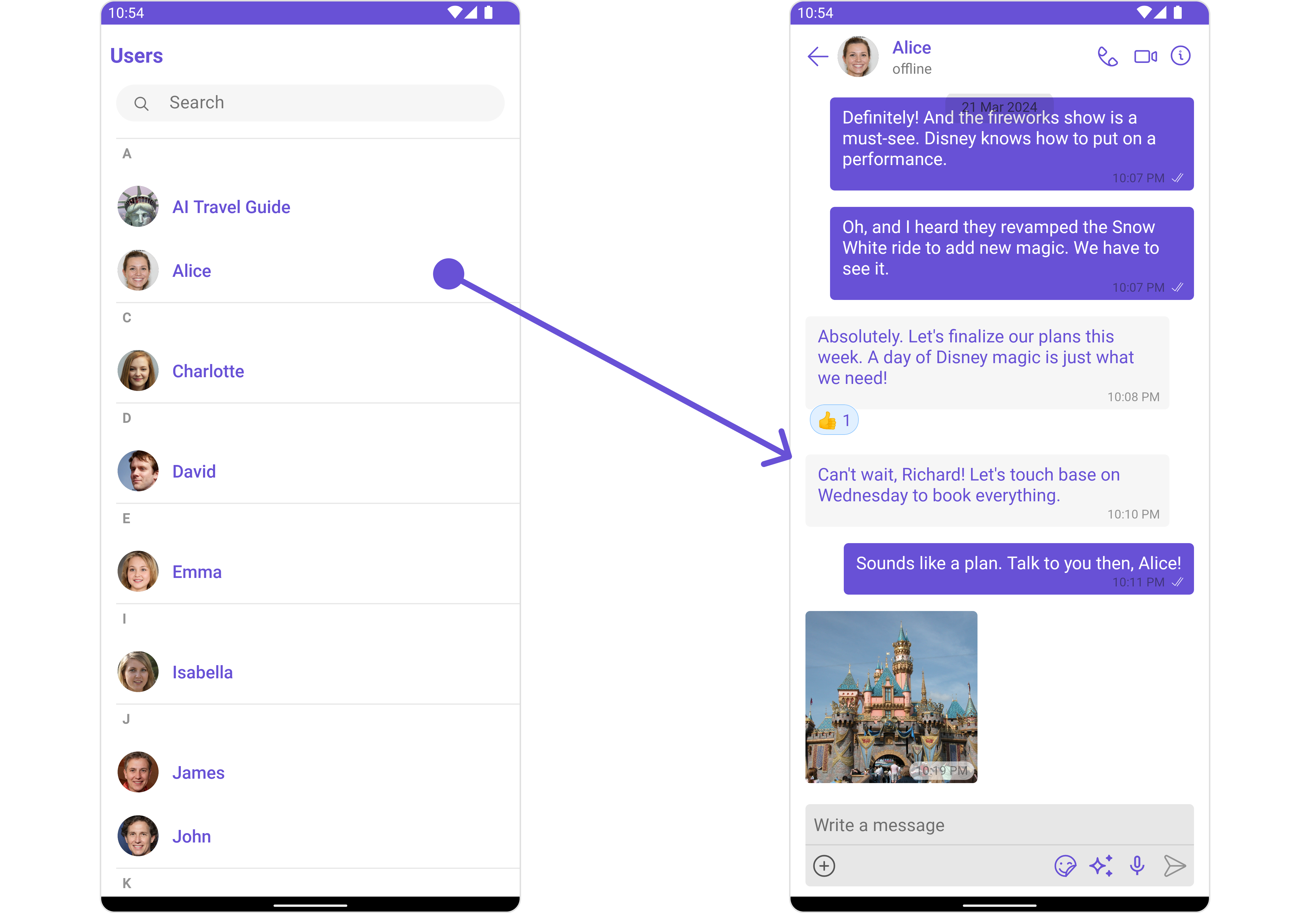 To fit your app’s design requirements, you have the ability to customize the appearance of the UsersWithMessages component. We provide exposed methods that allow you to modify the experience and behavior according to your specific needs.