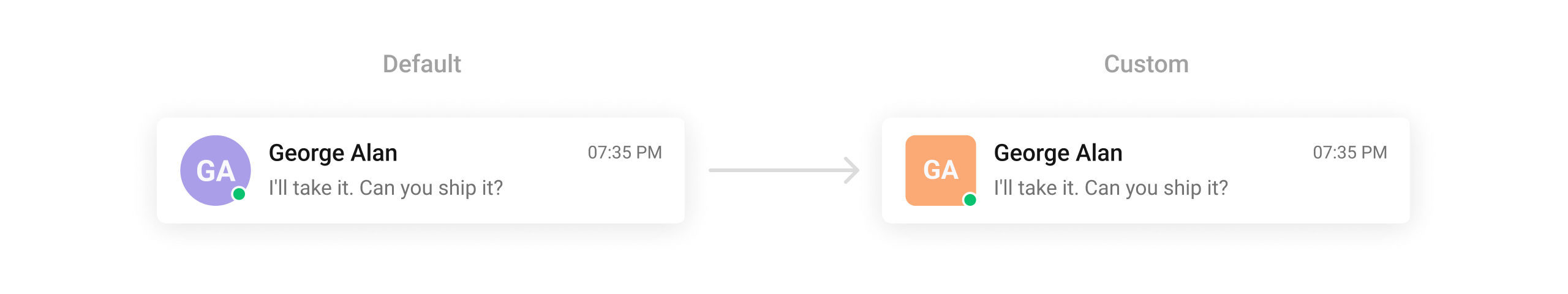 Personalize user avatars with different shapes, sizes, and borders.