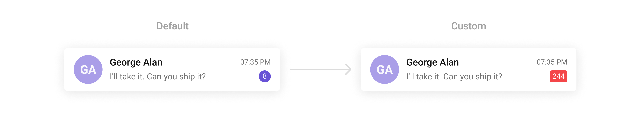 Customize badges for unread messages and notifications.