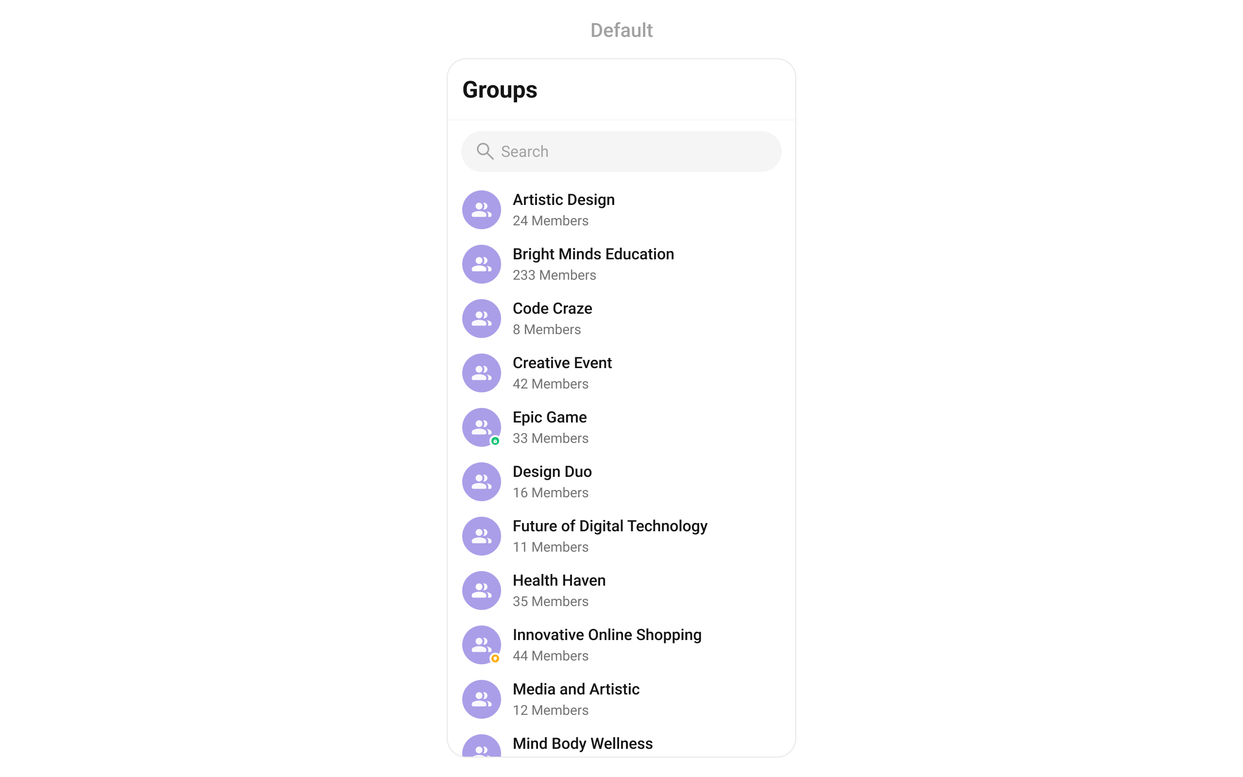 CometChatGroups functions as a standalone Widget designed to create a screen displaying a list of groups, with the added functionality of enabling users to search for specific groups. Acting as a container widget, CometChatGroups encapsulates and formats the CometChatListBase and CometChatGroupList widgets without introducing any additional behavior of its own.