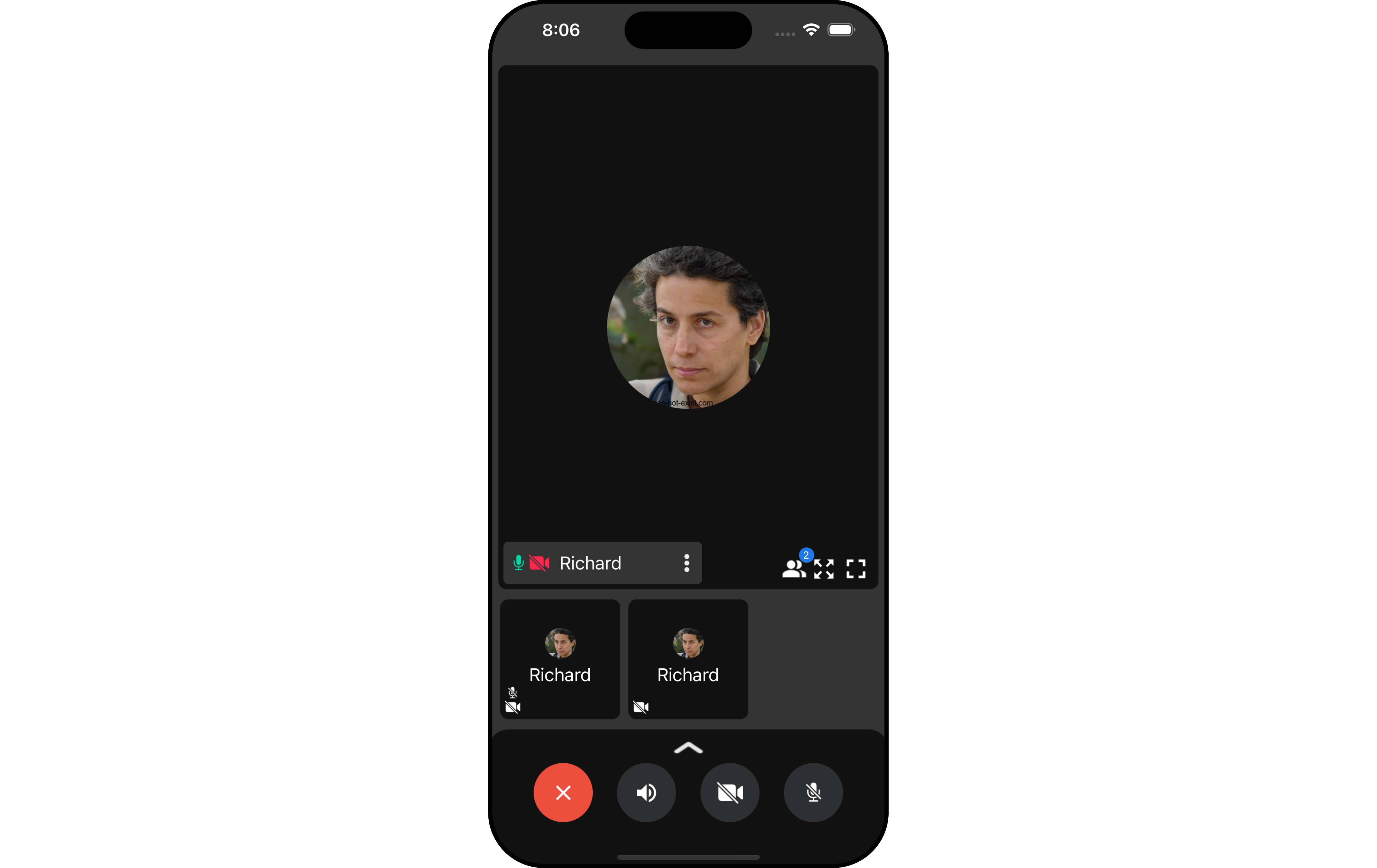 The OngoingCall component is the user interface that displays during an ongoing call. For an audio call, this screen displays the participant’s name, call duration, and buttons to mute the audio, enable or disable video, switch the camera, and end the call. For a video call, the Call Screen might additionally display the video footage from both the user’s camera and the recipient’s camera.