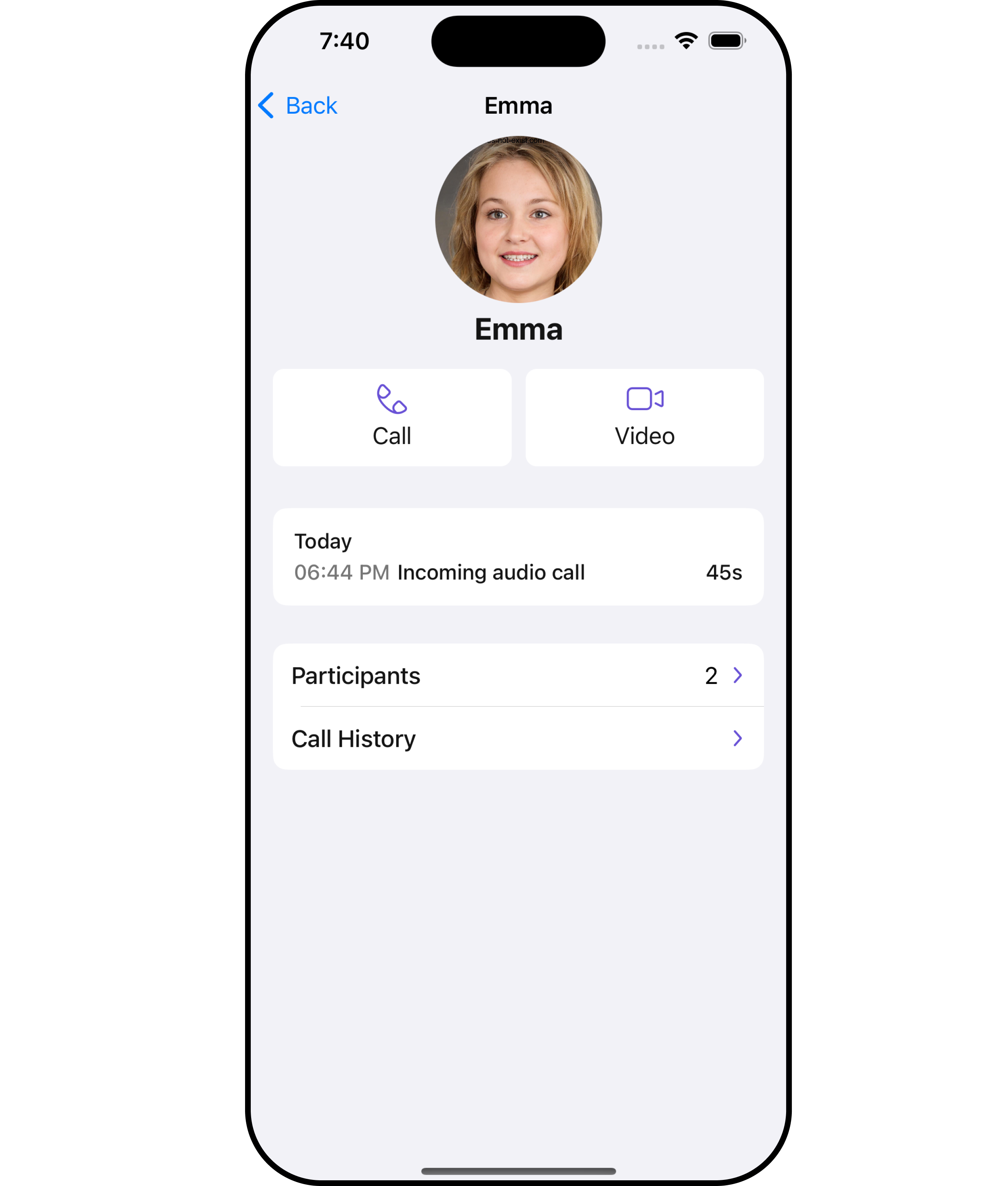 CometChatCallLogDetails is a ViewController, it can be seamlessly presented within your application. To display the details of a CallLog, you simply need to pass the corresponding CallLog object to the CometChatCallLogDetails instance using its setCallLog property. This enables you to efficiently showcase specific call log details within your application’s interface.