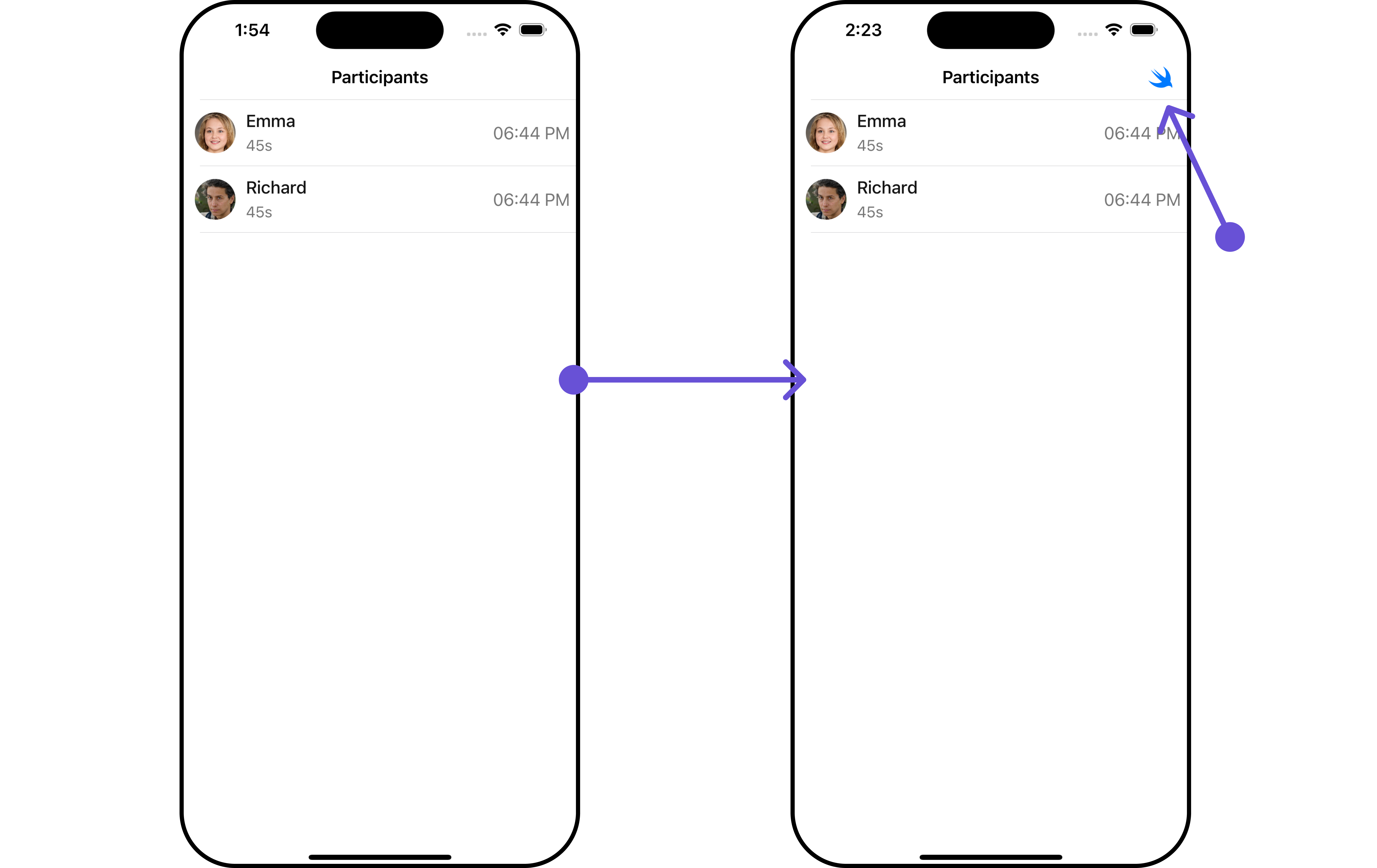 Ensure to pass and present CometChatCallLogParticipants. If a navigation controller is already in use, utilize the pushViewController function instead of directly presenting the view controller.