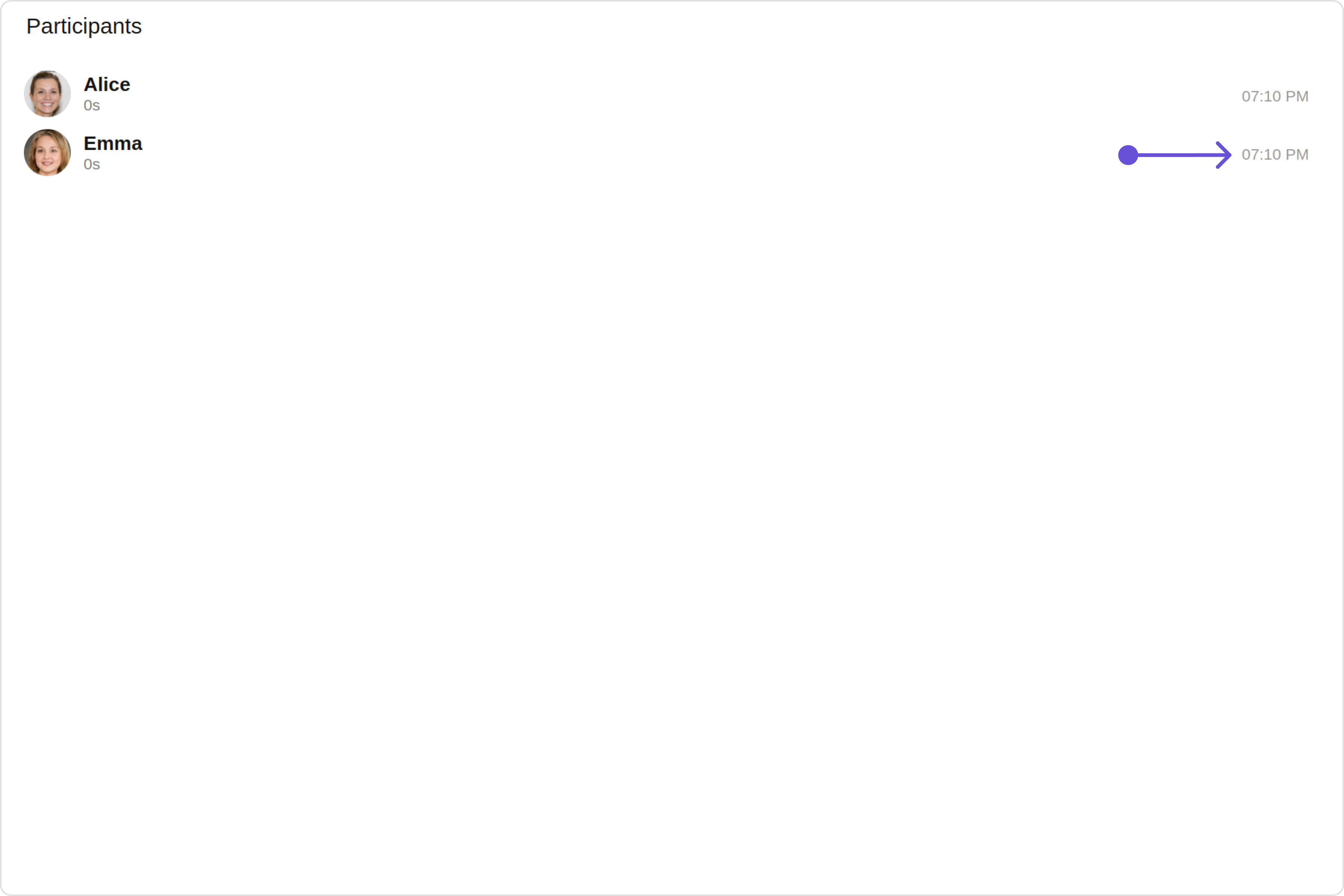 To fit your app’s design requirements, you have the ability to customize the appearance of the CallLogParticipants component. We provide exposed methods that allow you to modify the experience and behavior according to your specific needs.