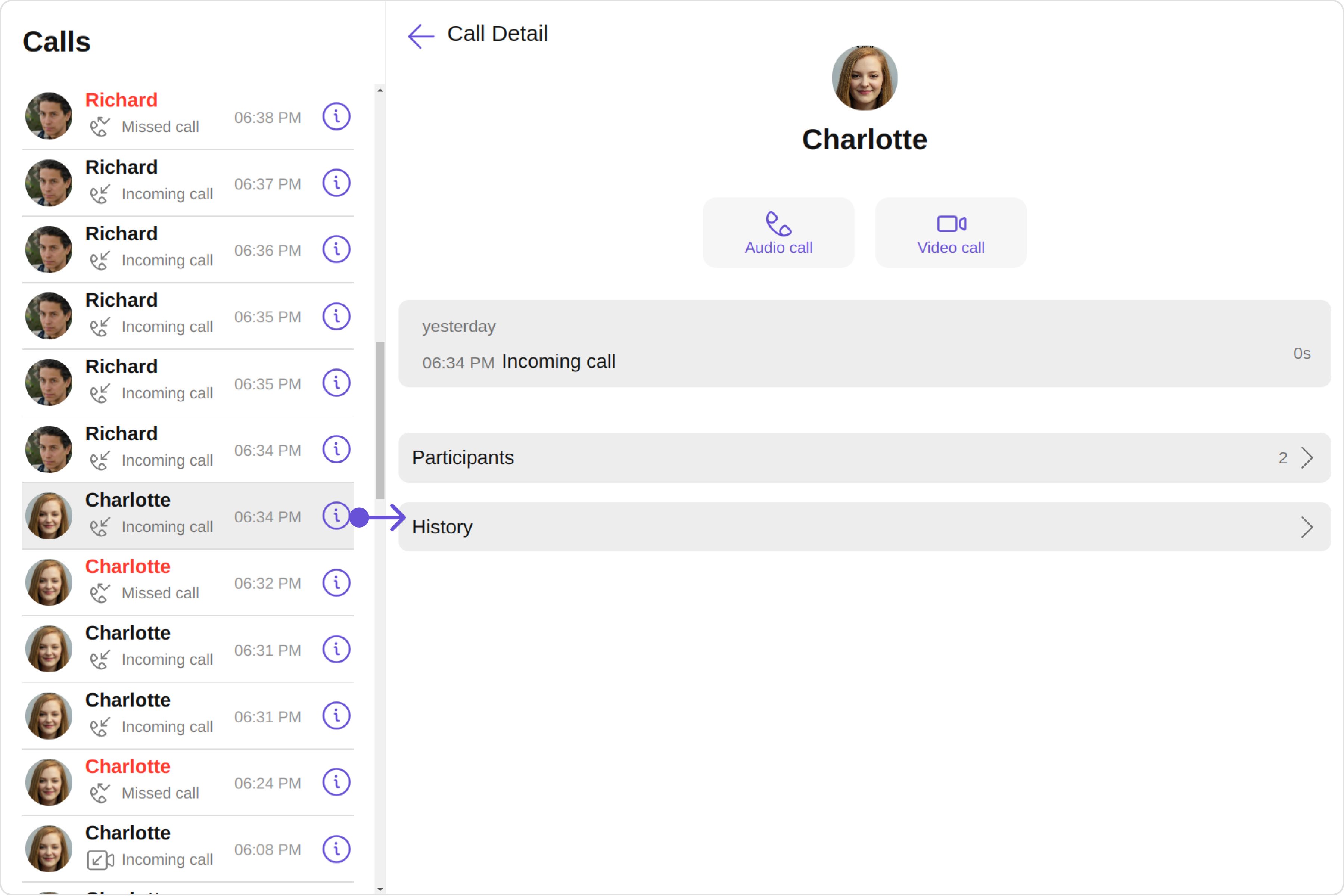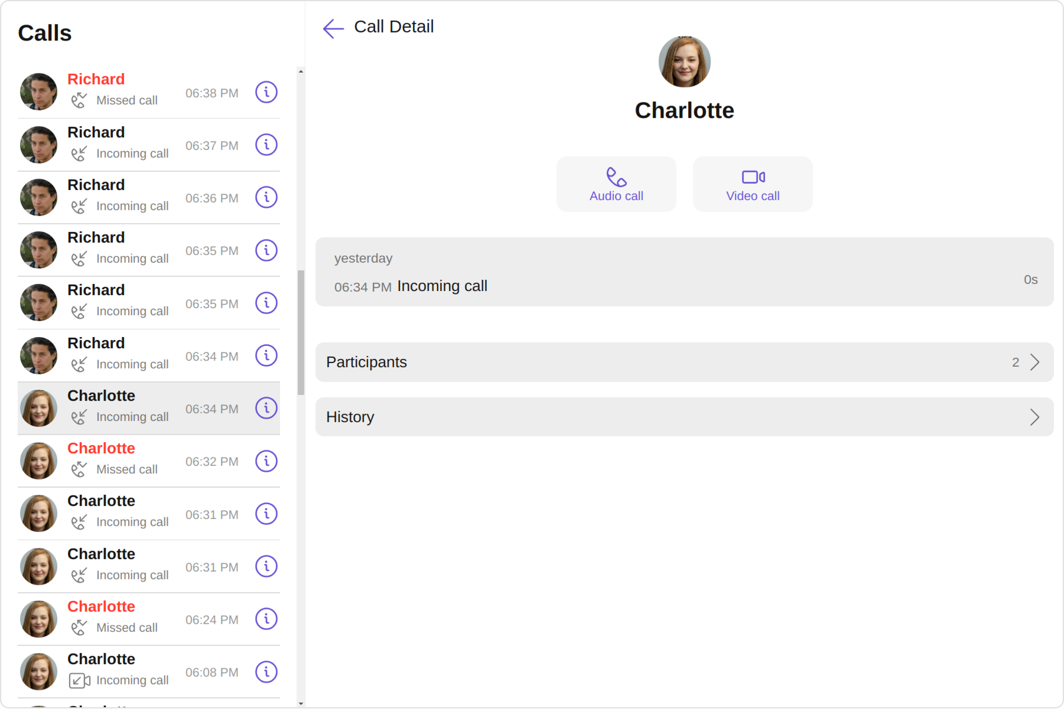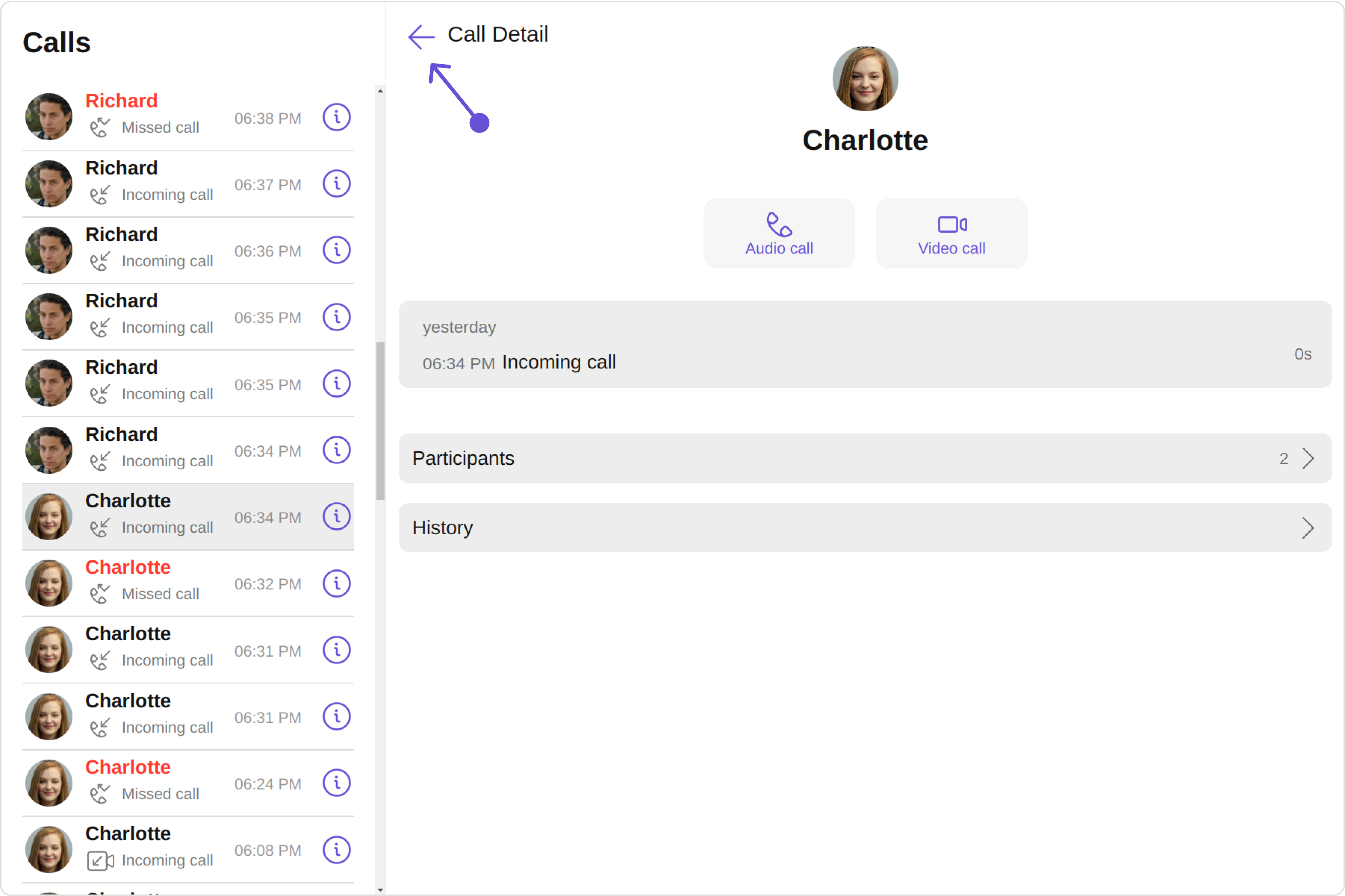 To fit your app’s design requirements, you have the ability to customize the appearance of the CallLogsWithDetails component. We provide exposed methods that allow you to modify the experience and behavior according to your specific needs.Style