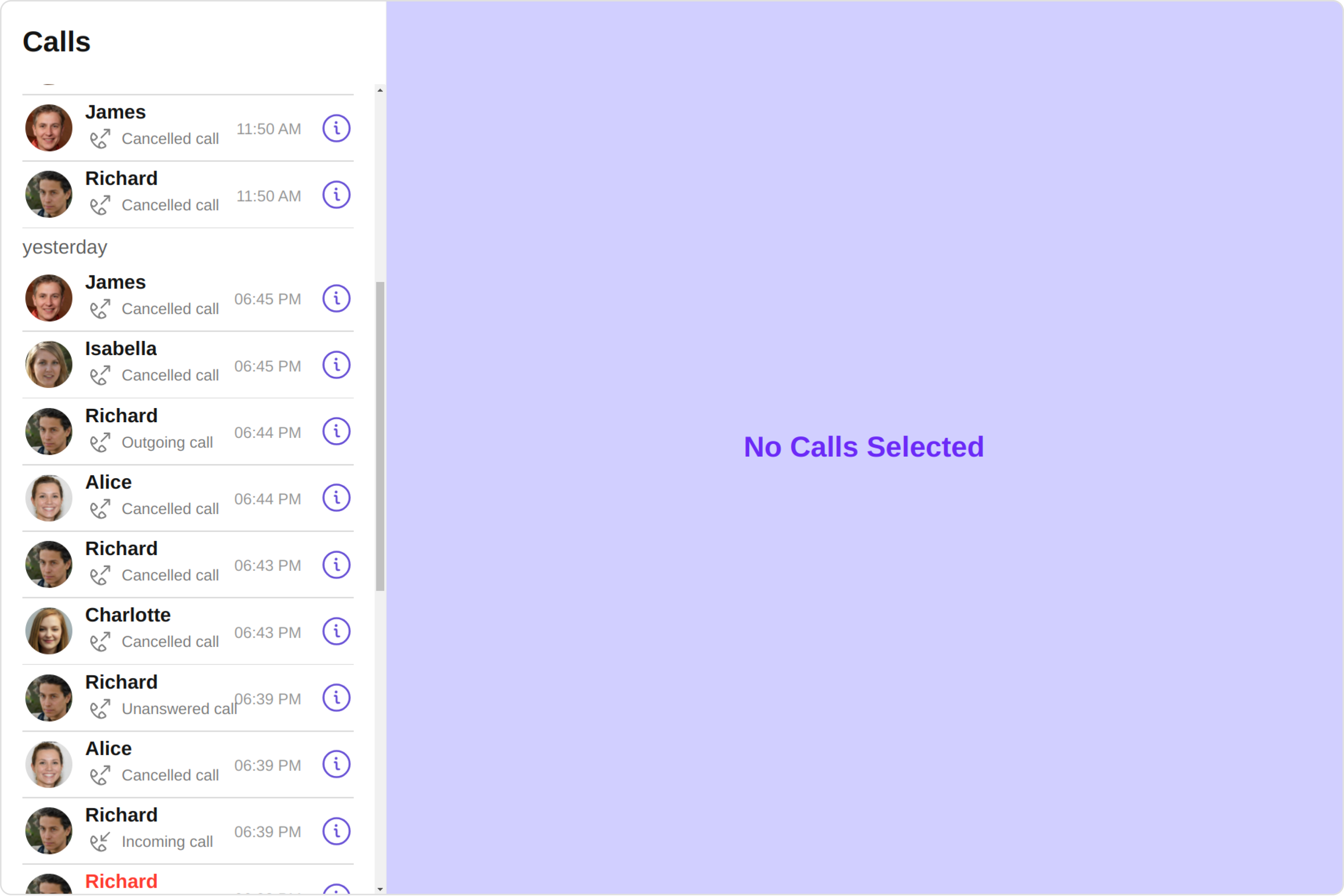 - CallLogsWithDetails utilizes the onInfoClick property of the
