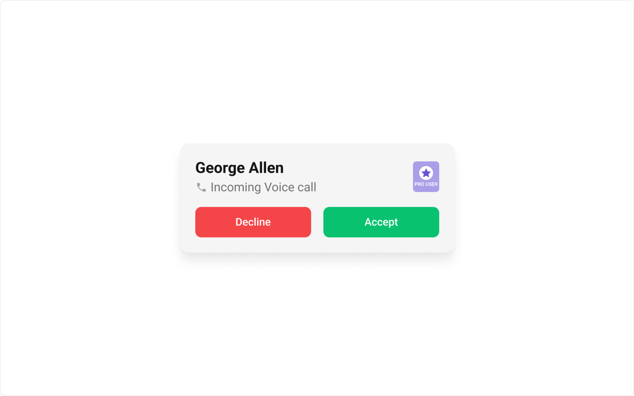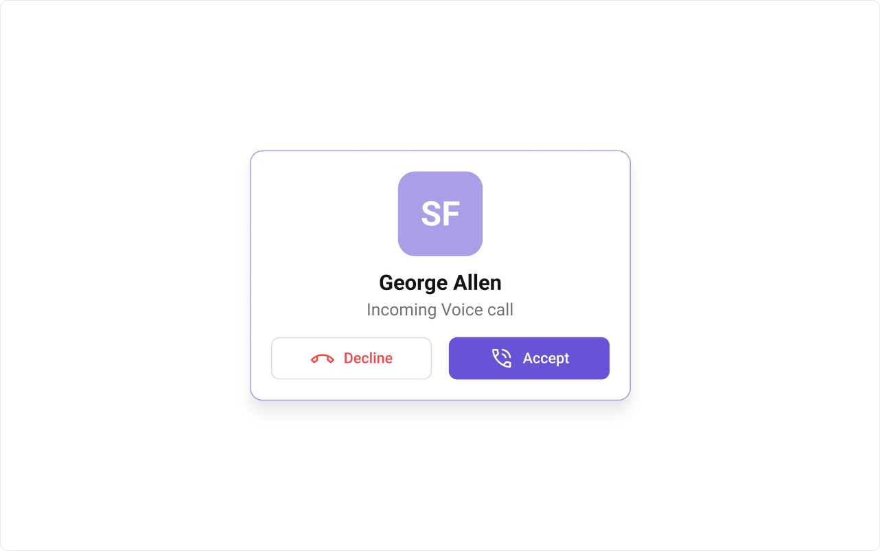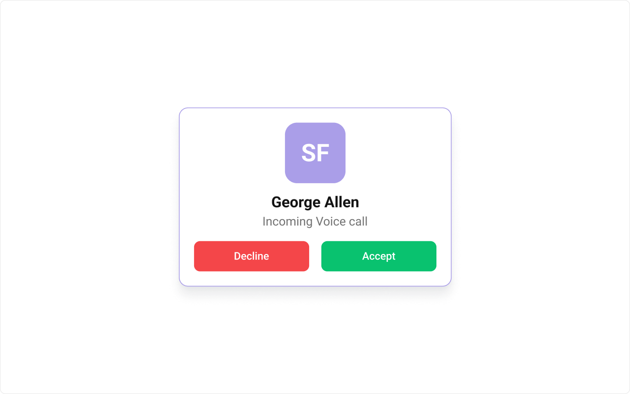 To fit your app’s design requirements, you can customize the appearance of the Incoming Call component. We provide exposed methods that allow you to modify the experience and behavior according to your specific needs.Style